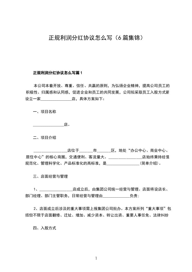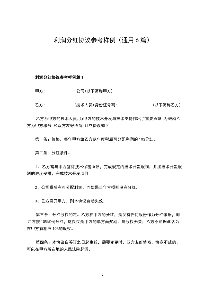 正规利润分红协议样例篇1