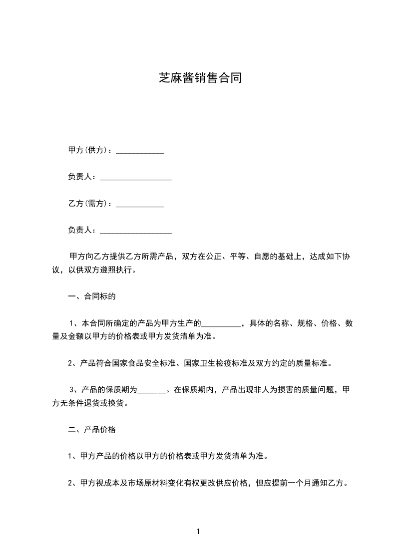 1、本合同所确定的产品为甲方生产的__________,具体的名称、规格、价格、数量及金额以甲方的价格表或甲方发货清单为准。