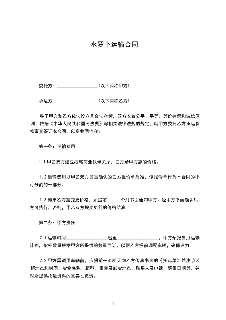 根据《中华人民共和国民法典》及国家有关运输规定,经过双方充分协商,特订立本合同,以便双方共同遵守。