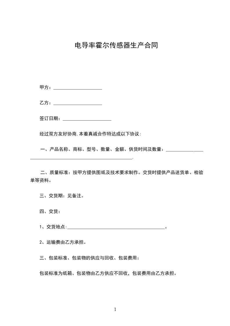 九、生效:本合同一式_______份,共两页,双方各执壹份,经双方签字盖章后立即生效。传真件具同等法律效力。