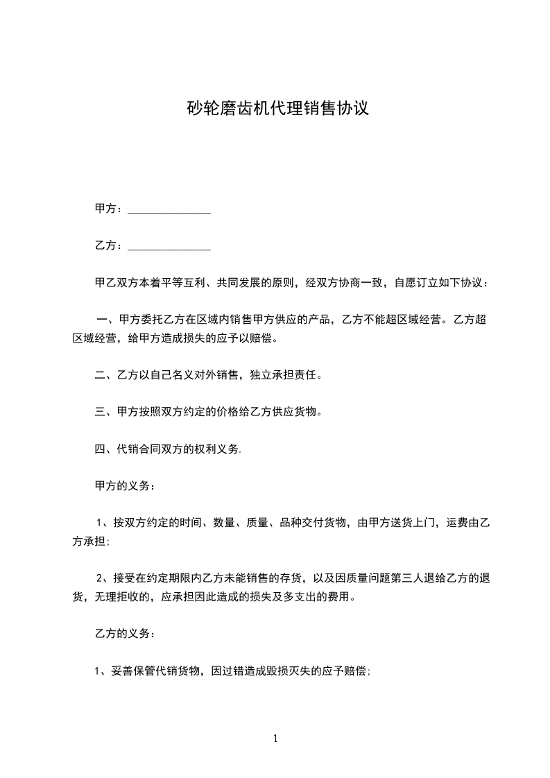 一、甲方委托乙方在区域内销售甲方供应的产品,乙方不能超区域经营。乙方超区域经营,给甲方造成损失的应予以赔偿。