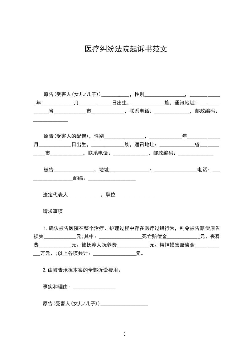 原告(受害人的配偶),性别________________,_____________年_____________月_____________日出生,_____________族,通讯地址:______________省_____________市_____________,联系电话:______________,邮政编码:______________