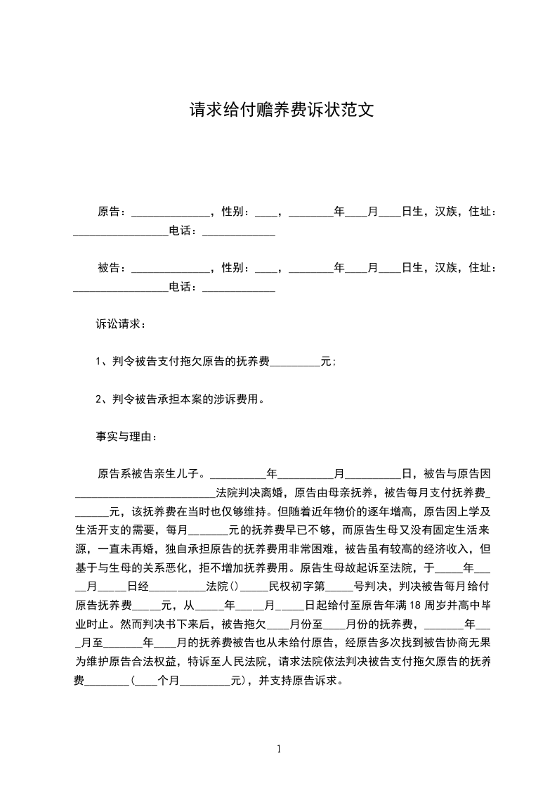 1、判令被告支付拖欠原告的抚养费_________元;