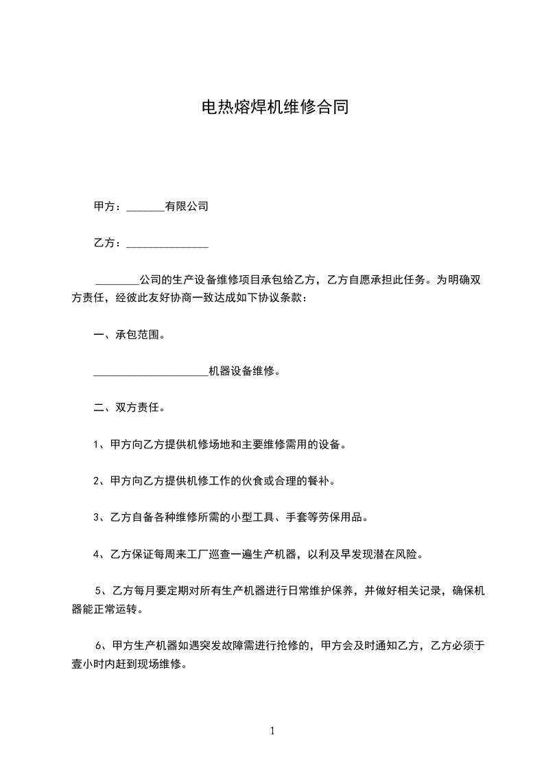 6、质保期满后,应买方要求,卖方应参考届时的市场价格,优惠向买方提供必须的零配件。