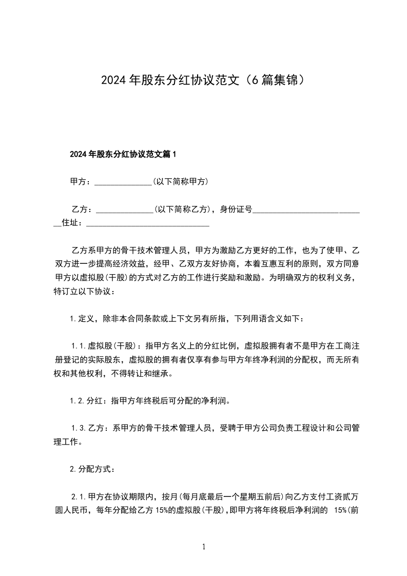 2.1.甲方在协议期限内,每年分配给乙方占甲方股份______________%的比例分配给乙方。