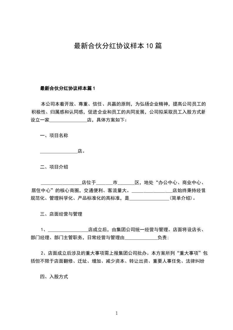 最新合伙分红协议样本篇1