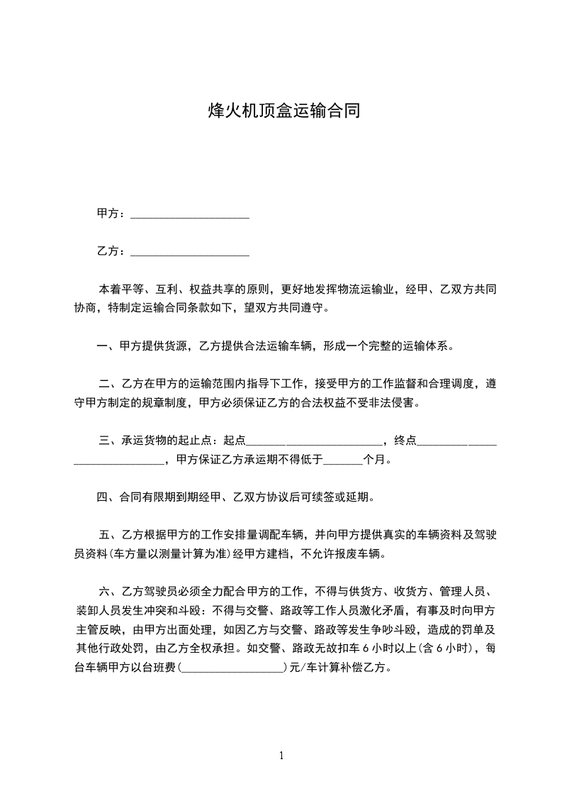 一、甲方提供货源,乙方提供合法运输车辆,形成一个完整的运输体系。