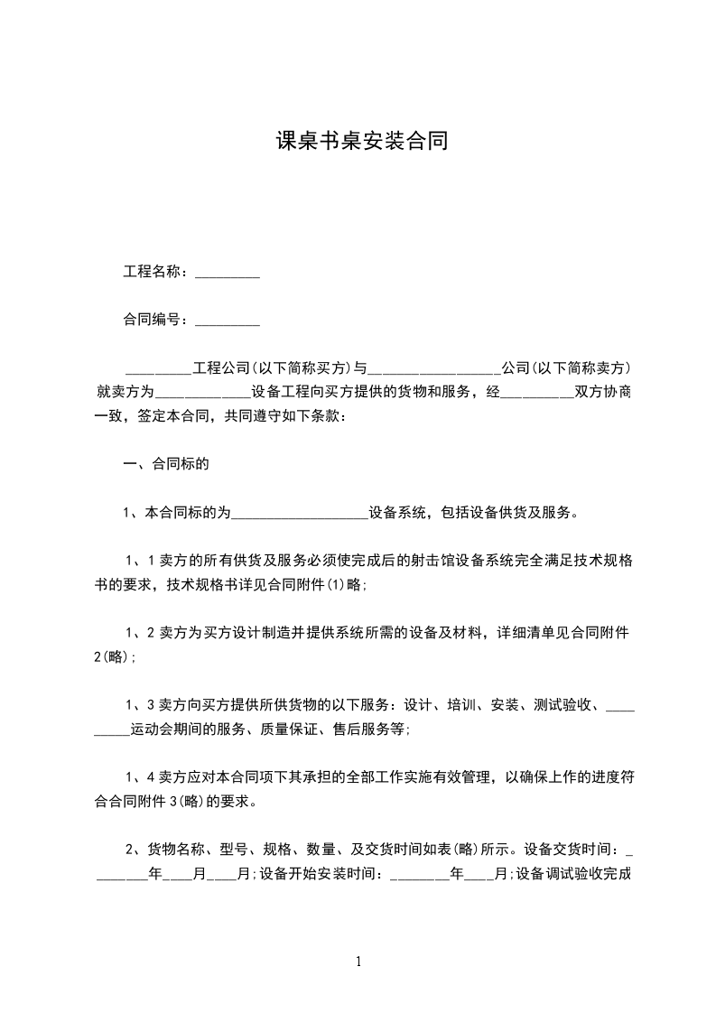 (1)合同签订之日起______个工作日内,乙方派出工程技术及施工人员到达工地现场开始安装施工;