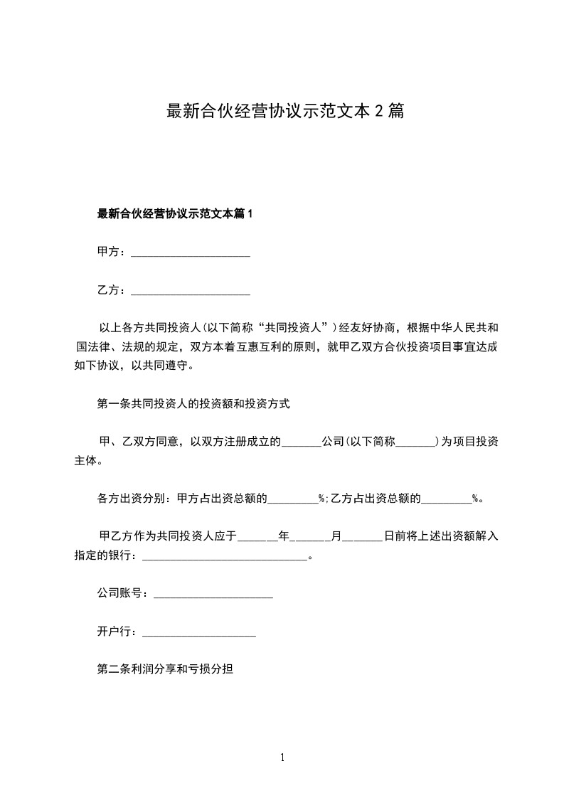 1.合伙人_______(姓名),以_______方式出资,计人民币________元。(其他合伙人同上顺序列出)
