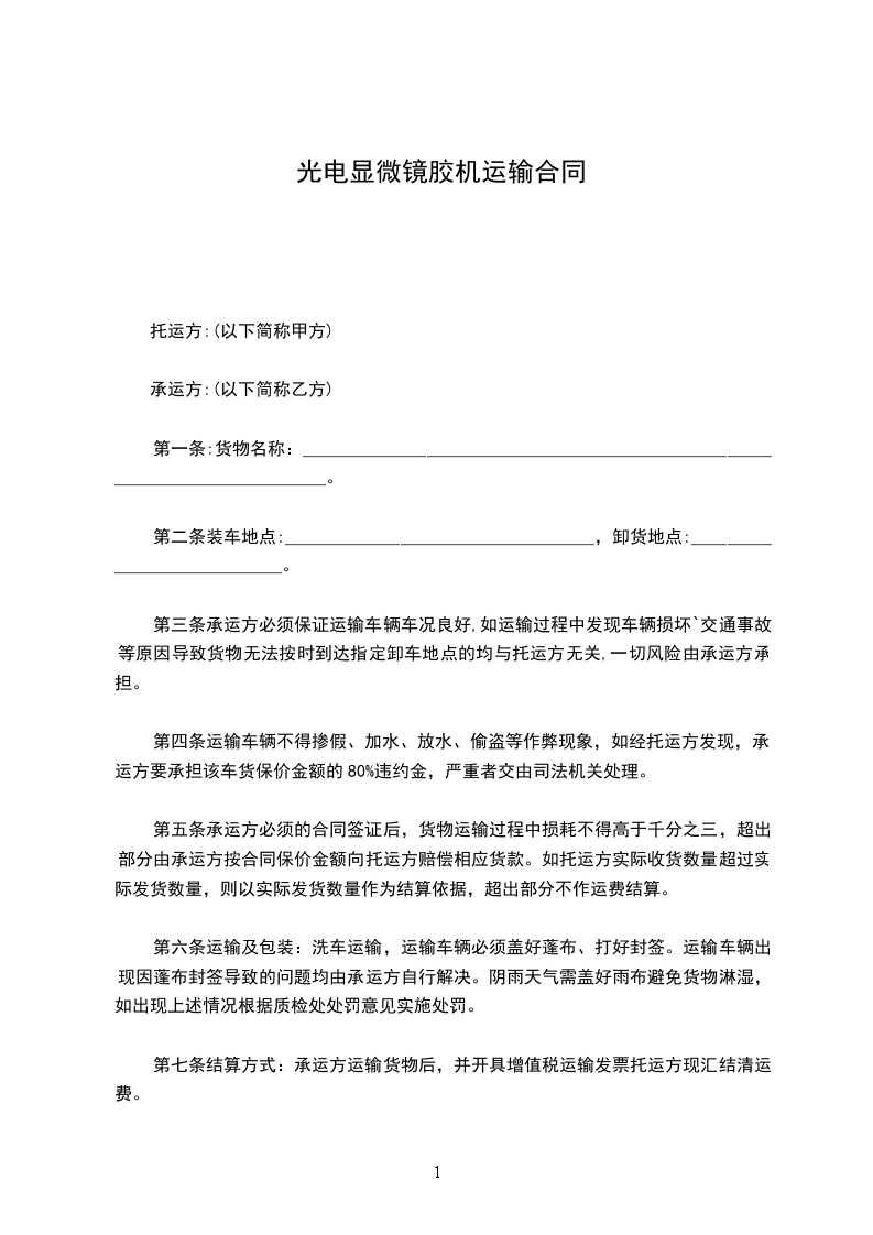 托运方:(以下简称甲方)