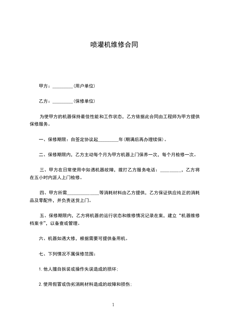 1.1、乙方承接甲方____________________________修理工作。并按本合同规定的要求,经验收合格后交付甲方。