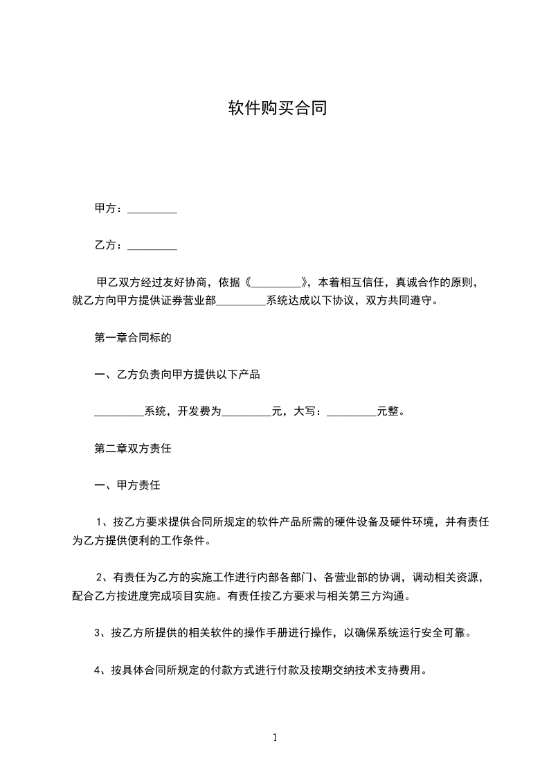 甲乙双方经过友好协商,依据《_________》,本着相互信任,真诚合作的原则,就乙方向甲方提供证券营业部_________系统达成以下协议,双方共同遵守。