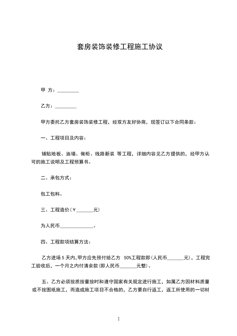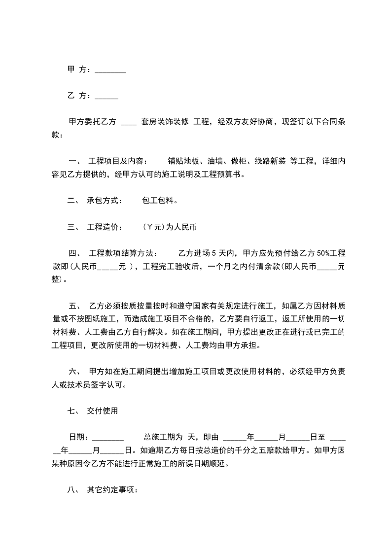 经甲乙双方友好协商,就乙方承包甲方位于________栋房的装饰装修工程(以下简称工程)签订本合同。