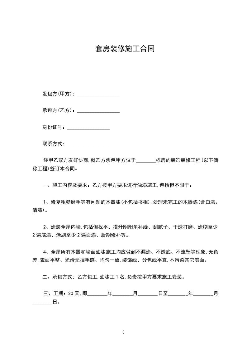 二、承包方式:乙方包工,油漆工1名,负责按甲方要求施工安装。