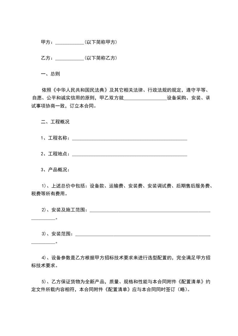 1、合同价款:人民币¥_____________________元(大写:_____________________整),设备调试完毕,工程竣工验收合格后,甲方一次性付清。