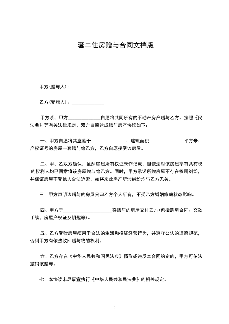 双方根据《中华人民共和国民法典》就赠与事项达成如下协议