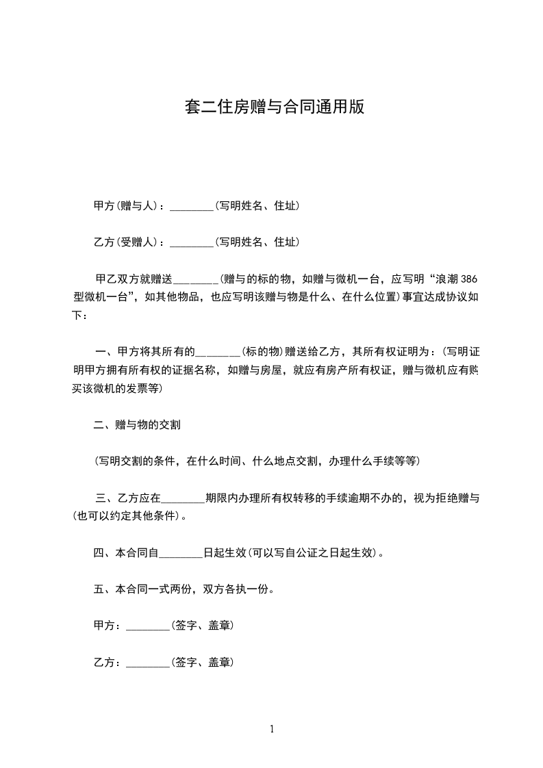 1.赠与标的的状况:_____________________。(包括赠与标的的名称、数量、质量、所在地等)