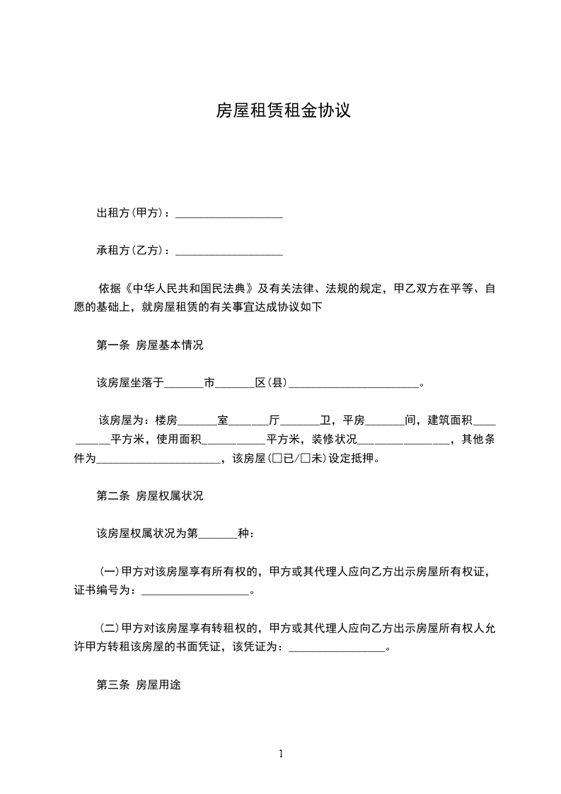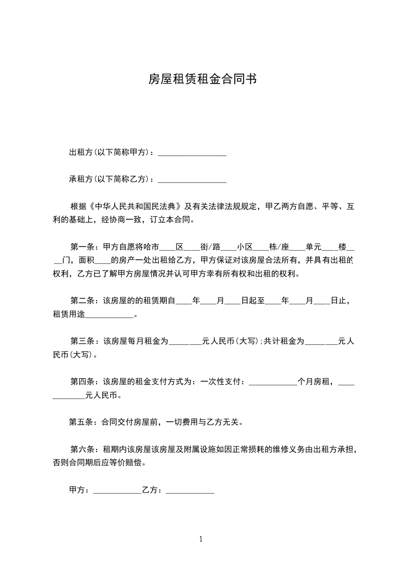 一、租赁房屋地址:________区________里________园________楼________门________室