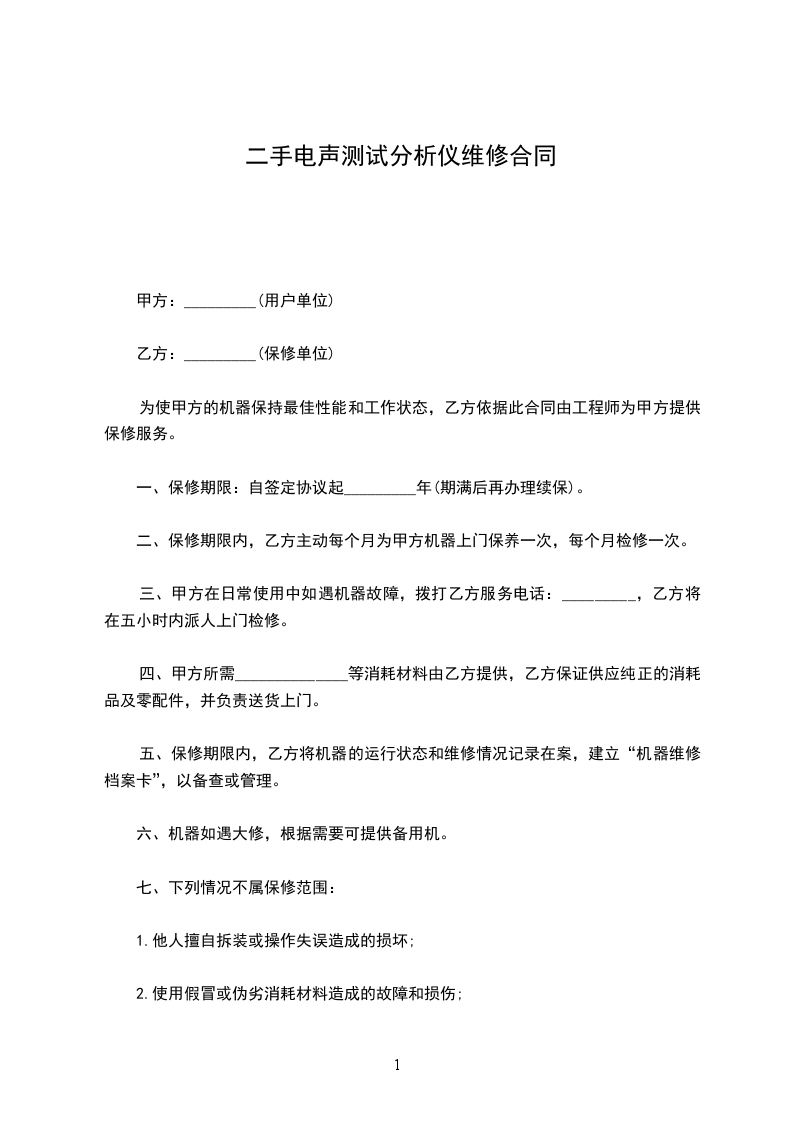 四、乙方在保修期内不得使用不标准的消耗材料,任意拆装机器或另请他人维修,否则后果自负。