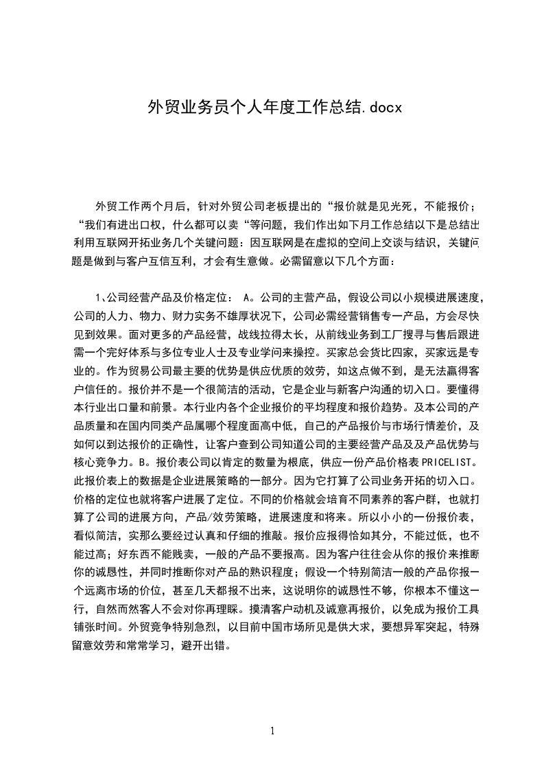 1、公司经营产品及价格定位:A。公司的主营产品,假设公司以小规模进展速度,公司的人力、物力、财力实务不雄厚状况下,公司必需经营销售专一产品,方会尽快见到效果。面对更多的产品经营,战线拉得太长,从前线业务到工厂搜寻与售后跟进需一个完好体系与多位专业人士及专业学问来操控。买家总会货比四家,买家远是专业的。作为贸易公司最主要的优势是供应优质的效劳,如这点做不到,是无法赢得客户信任的。报价并不是一个很简洁的活动,它是企业与新客户沟通的切入口。要懂得本行业出口量和前景。本行业内各个企业报价的平均程度和报价趋势。及本公司的产品质量和在国内同类产品属哪个程度面高中低,自己的产品报价与市场行情差价,及如何以到达报价的正确性,让客户查到公司知道公司的主要经营产品及及产品优势与核心竞争力。B。报价表公司以肯定的数量为根底,供应一份产品价格表PRICELIST。此报价表上的数据是企业进展策略的一部分。因为它打算了公司业务开拓的切入口。价格的定位也就将客户进展了定位。不同的价格就会培育不同素养的客户群,也就打算了公司的进展方向,产品/效劳策略,进展速度和将来。所以小小的一份报价表,看似简洁,实那么要经过认真和仔细的推敲。报价应报得恰如其分,不能过低,也不能过高;好东西不能贱卖,一般的产品不要报高。因为客户往往会从你的报价来推断你的诚恳性,并同时推断你对产品的熟识程度;假设一个特别简洁一般的产品你报一个远离市场的价位,甚至几天都报不出来,这说明你的诚恳性不够,你根本不懂这一行,自然而然客人不会对你再理睬。摸清客户动机及诚意再报价,以免成为报价工具,铺张时间。外贸竞争特别急烈,以目前中国市场所见是供大求,要想异军突起,特殊留意效劳和常常学习,避开出错。