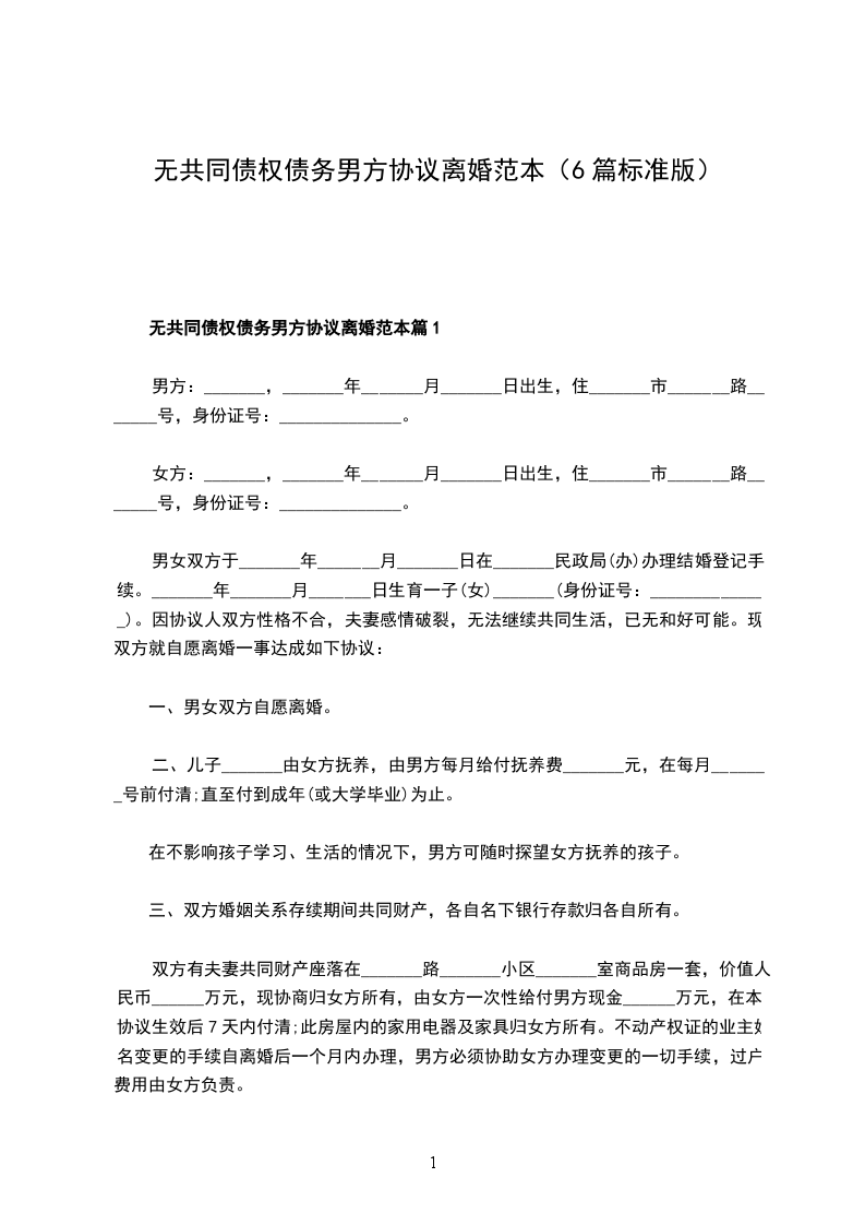 四、夫妻双方无共同债权、债务的享有和清偿情况。