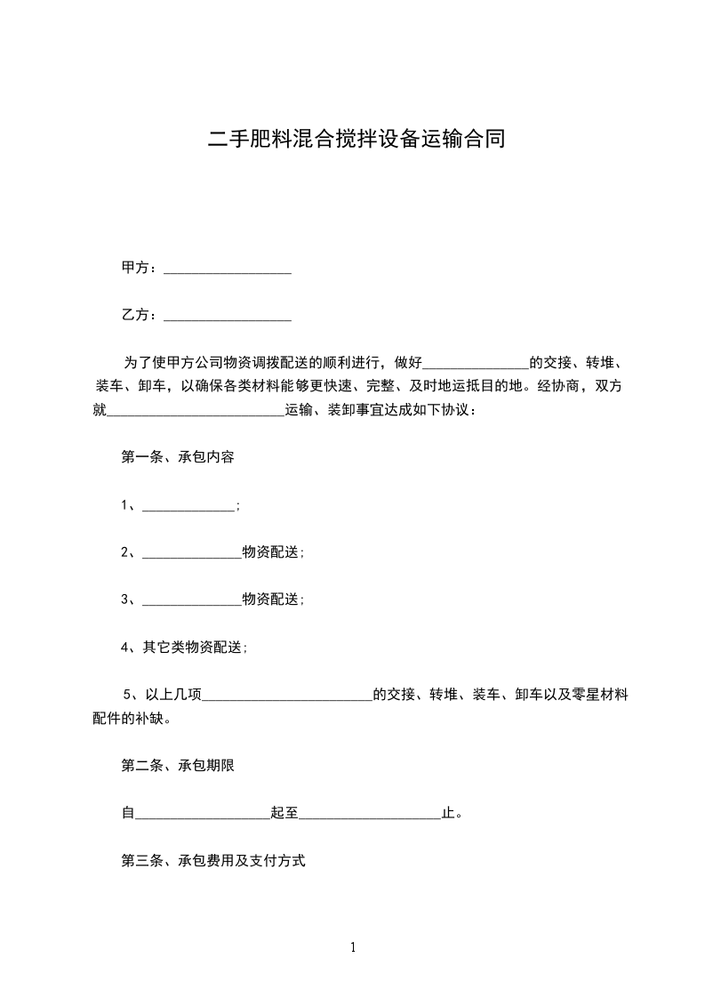 6、货物到达目的地后,乙方应提供不低于______________平方米的仓库卸放货物。