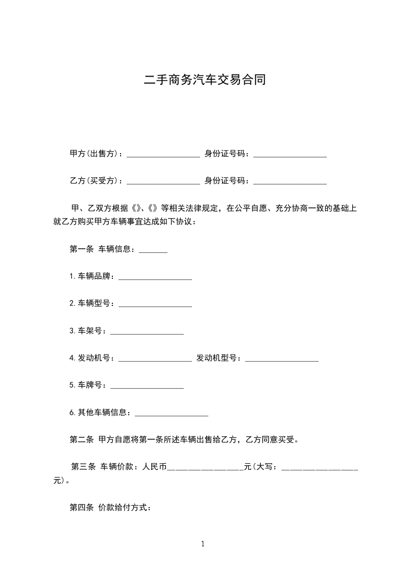 第一条卖方依法出卖具备以下条件的旧机动车:车主名称:号牌号码:厂牌型号:初次登记日期:发动机号:车架号:养路费缴付有效期自________年____月____日至________年____月____日。最近一次年检时间:________年____月。行驶公里数:25万公里。车辆使用性质:(/)客运、(/)货运、(是)出租、(/)租赁、(/)非营运、(/)其它。