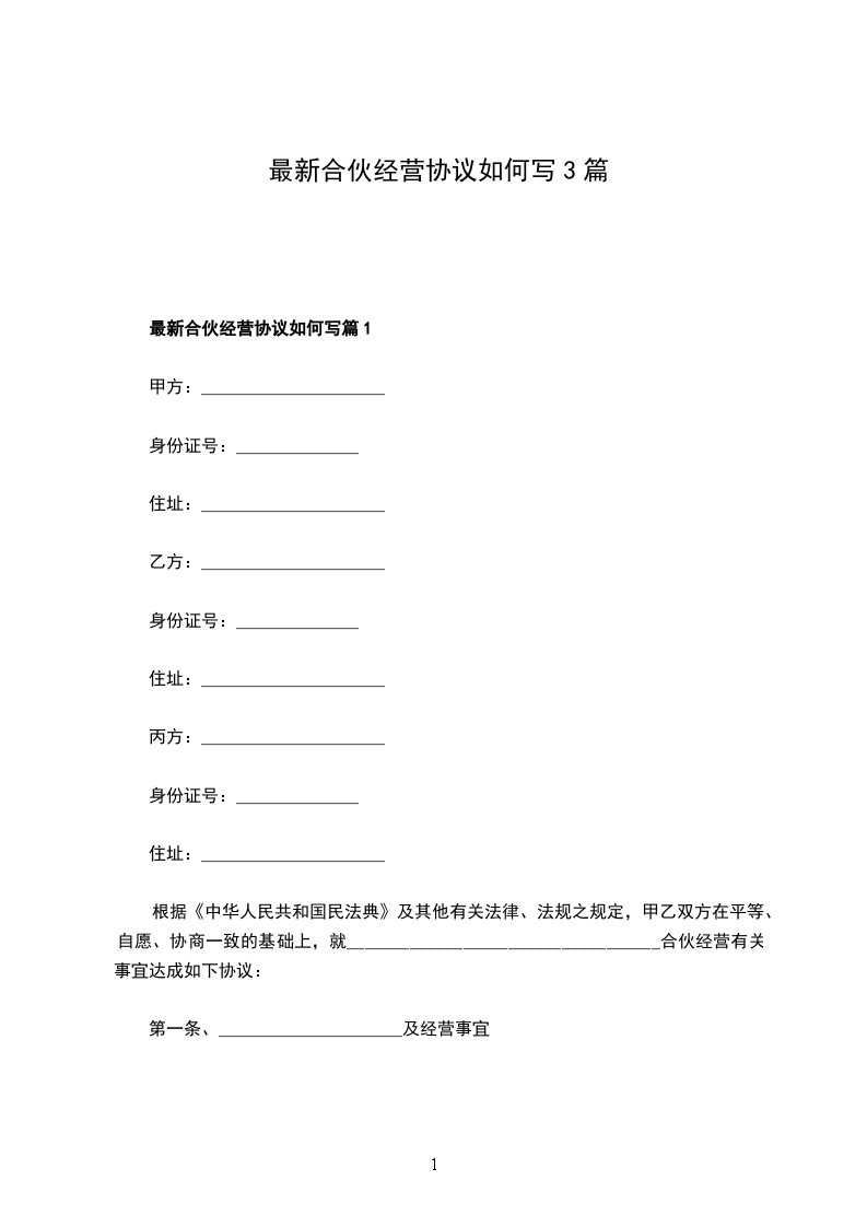 甲、乙、丙三方经友好协商,就共同经营达成以下协议: