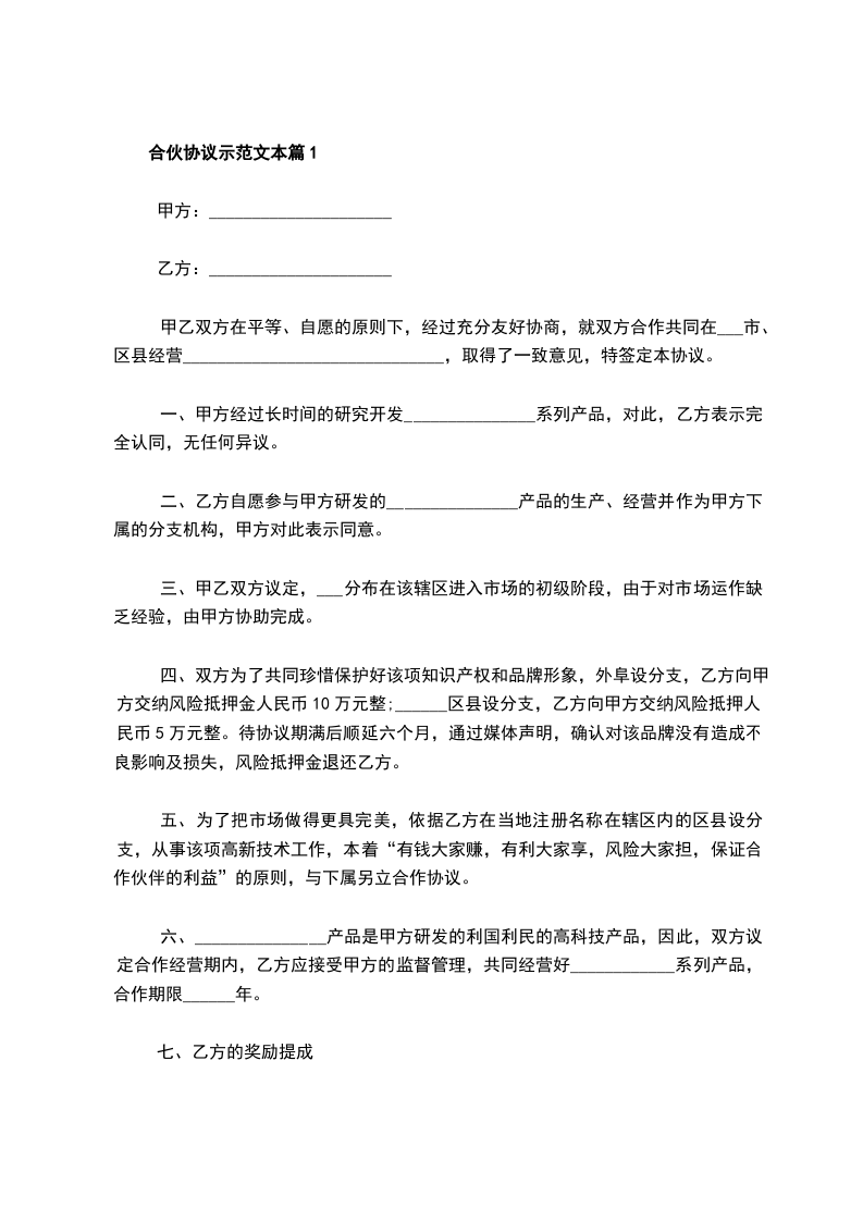 合伙协议示范文本篇1