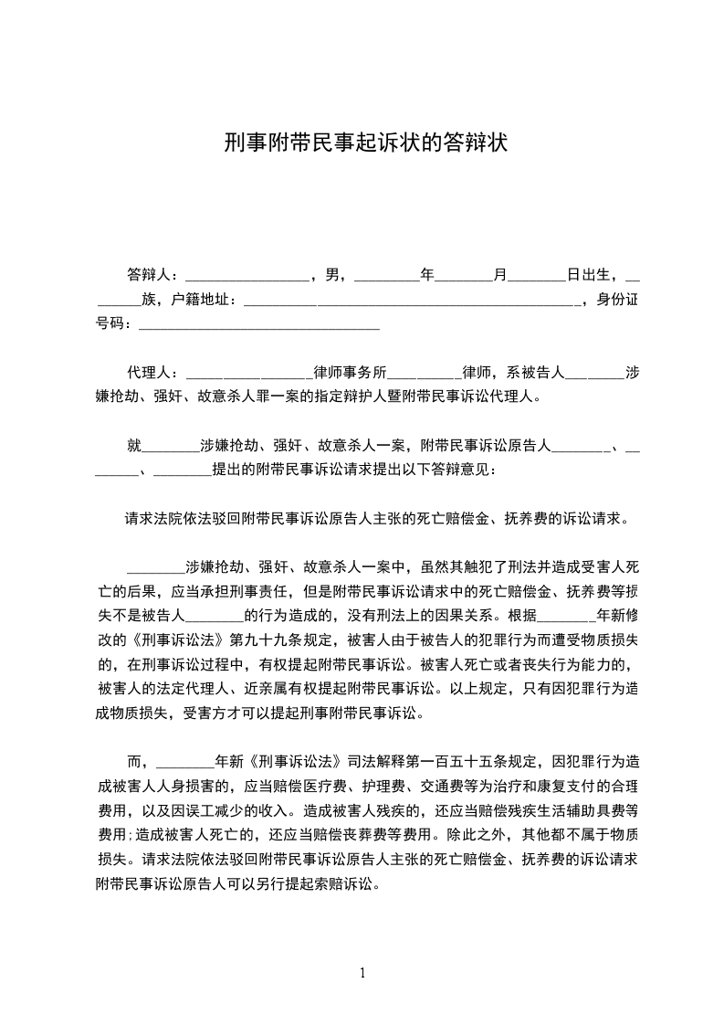 就________涉嫌抢劫、强奸、故意杀人一案,附带民事诉讼原告人________、________、________提出的附带民事诉讼请求提出以下答辩意见: