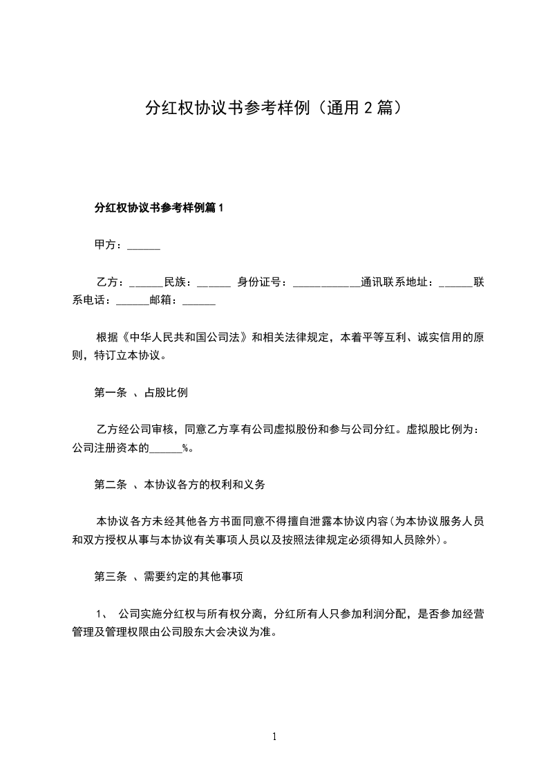 乙方经公司审核,同意乙方享有公司分红。比例为:_______。