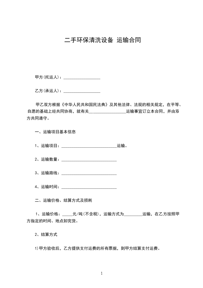 承运方(乙方):__________________有限公司