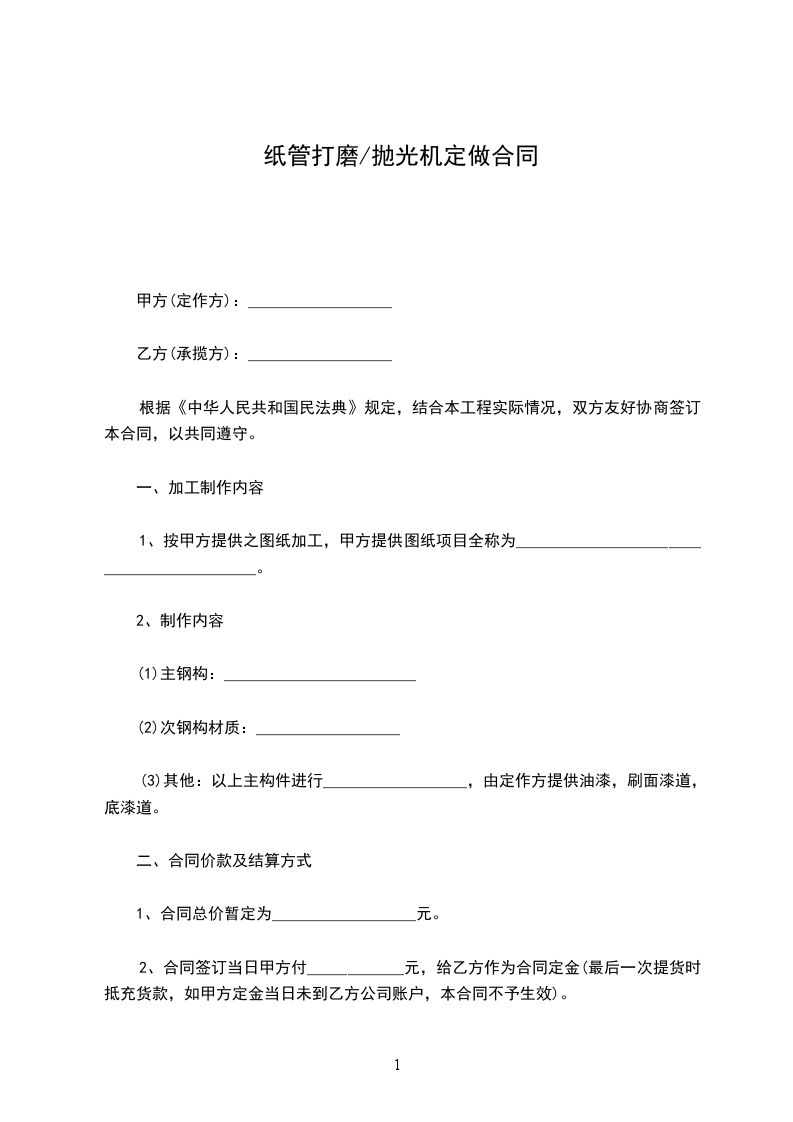 纸管打磨/抛光机定做合同