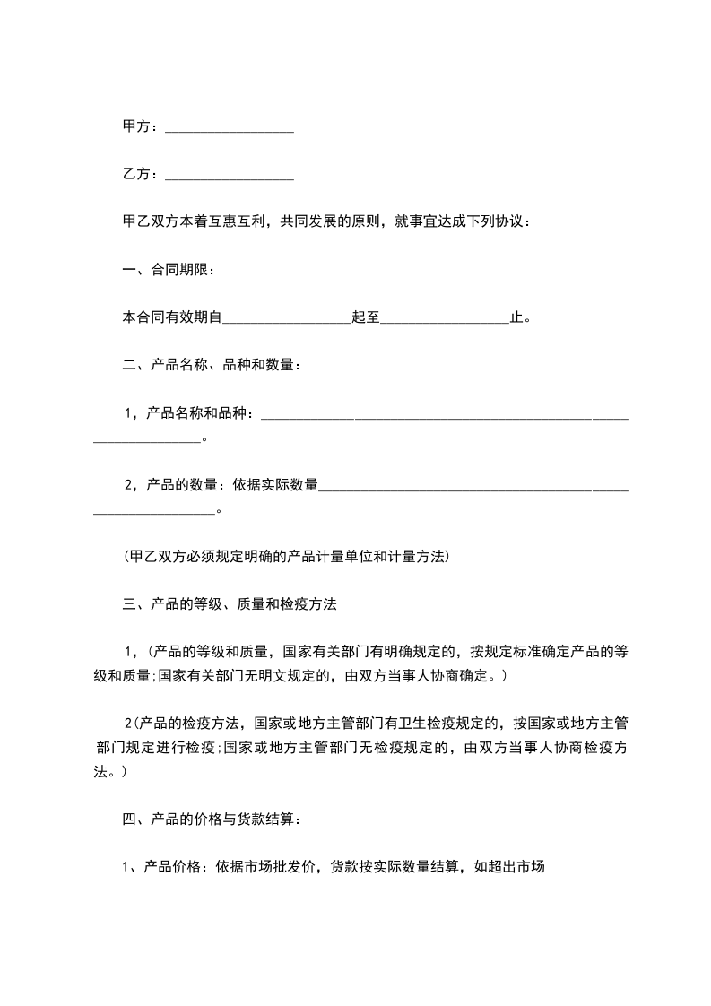 1、产品价格:依据市场批发价,货款按实际数量结算,如超出市场