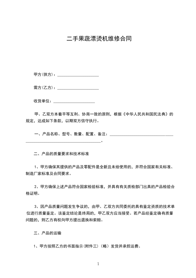 二手果蔬漂烫机维修合同