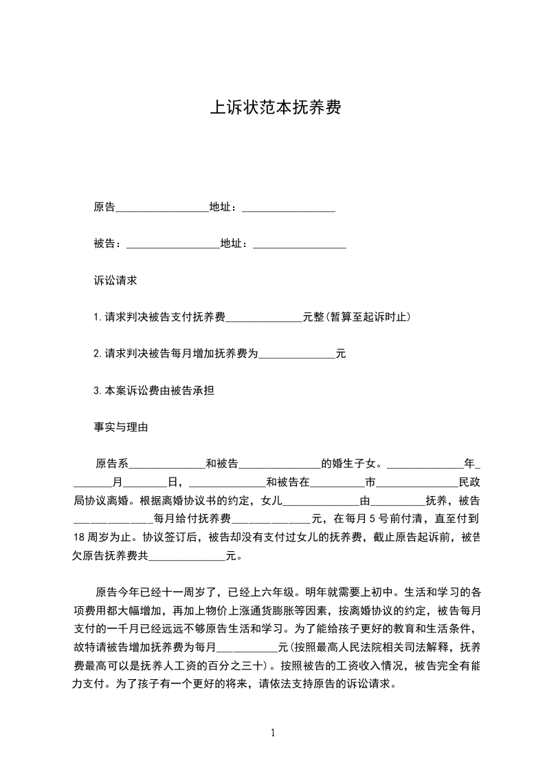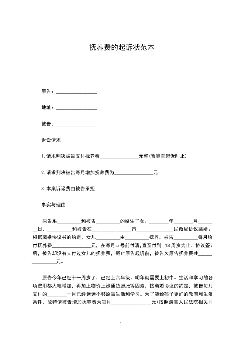 原告系被告亲生儿子。__________年__________月__________日,被告与原告因_________________________法院判决离婚,原告由母亲抚养,被告每月支付抚养费_______元,该抚养费在当时也仅够维持。但随着近年物价的逐年增高,原告因上学及生活开支的需要,每月_______元的抚养费早已不够,而原告生母又没有固定生活来源,一直未再婚,独自承担原告的抚养费用非常困难,被告虽有较高的经济收入,但基于与生母的关系恶化,拒不增加抚养费用。原告生母故起诉至法院,于_____年_____月_____日经__________法院( )_____民权初字第_____号判决,判决被告每月给付原告抚养费_____元,从_____年_____月_____日起给付至原告年满18周岁并高中毕业时止。然而判决书下来后,被告拖欠____月份至____月份的抚养费,_______年____月至_______年____月的抚养费被告也从未给付原告,经原告多次找到被告协商无果,为维护原告合法权益,特诉至人民法院,请求法院依法判决被告支付拖欠原告的抚养费________(____个月_________元),并支持原告诉求。