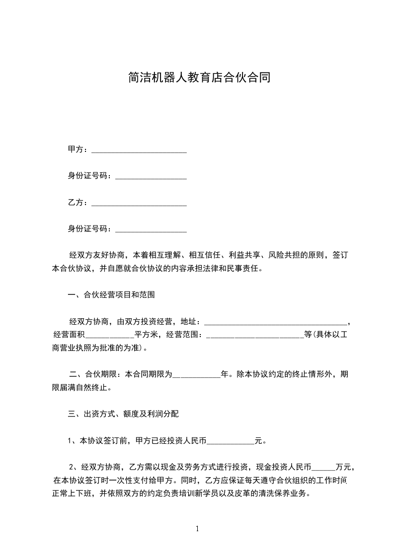 2、经双方协商,乙方需以现金及劳务方式进行投资,现金投资人民币______万元,在本协议签订时一次性支付给甲方。同时,乙方应保证每天遵守合伙组织的工作时间正常上下班,并依照双方的约定负责培训新学员以及皮革的清洗保养业务。