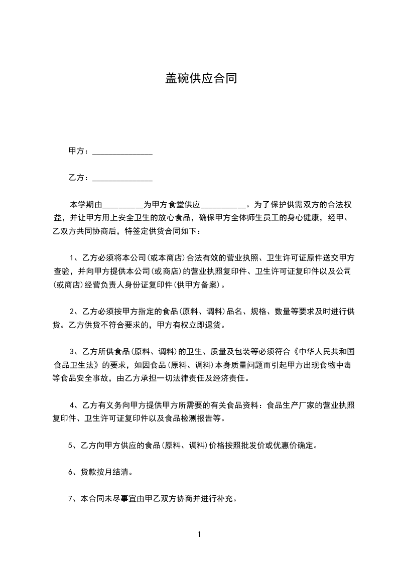 经双方洽谈,乙方成为甲方__________________原材料供应商。为了明确甲、乙双方的权利和义务,经双方友好协商,签订本合同。