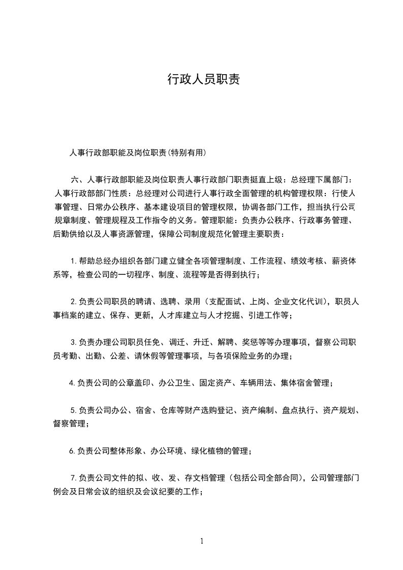 人事行政部职能及岗位职责(特别有用)