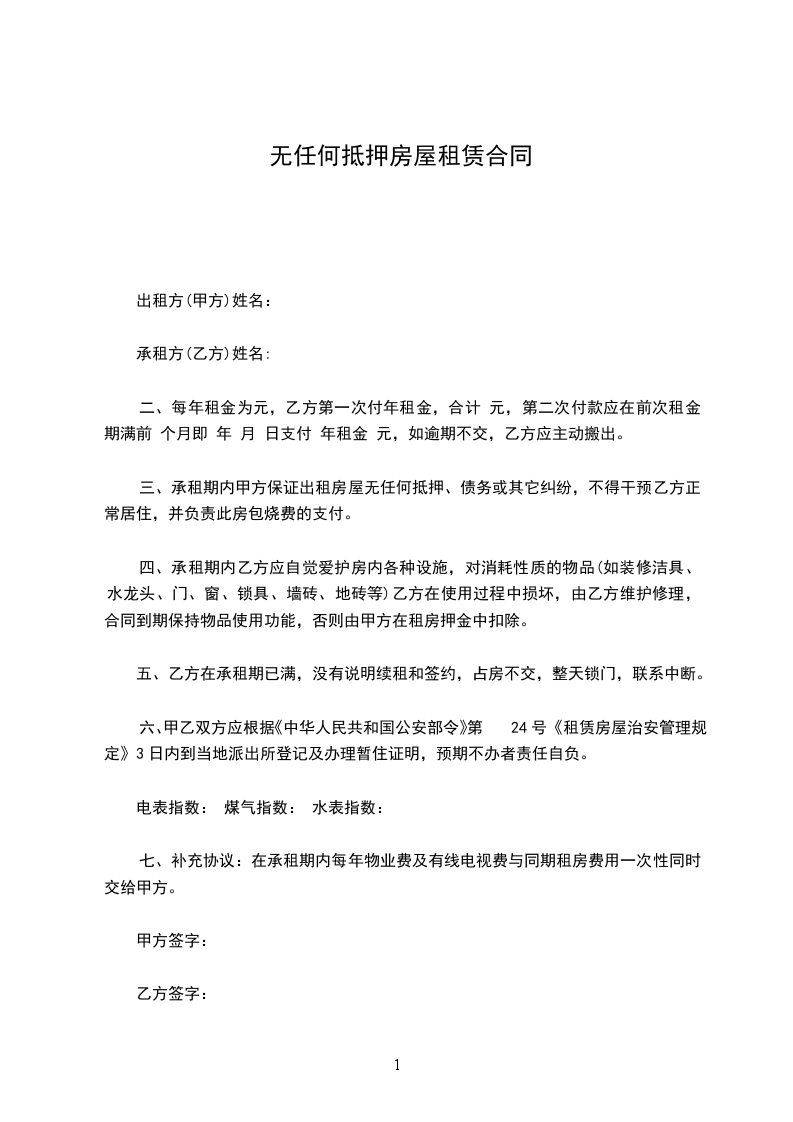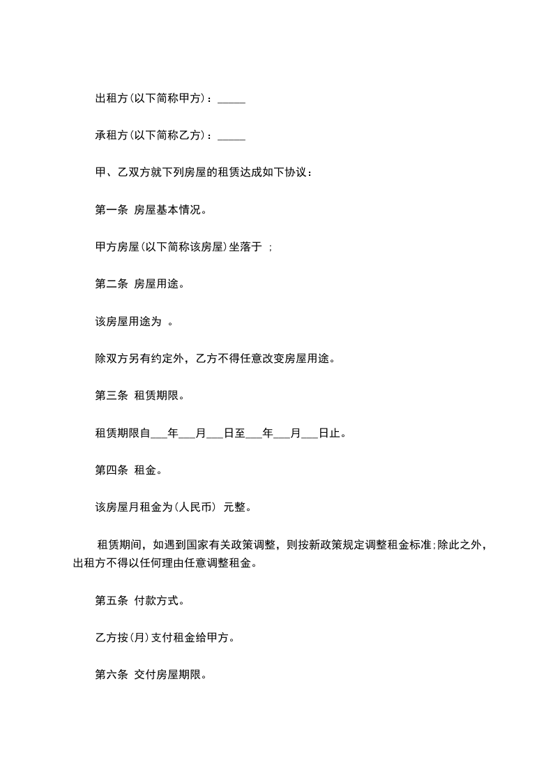 6.乙方入住该物业应保持周围环境整洁做好防火防盗工作,如发生事故乙方应负全部责任;