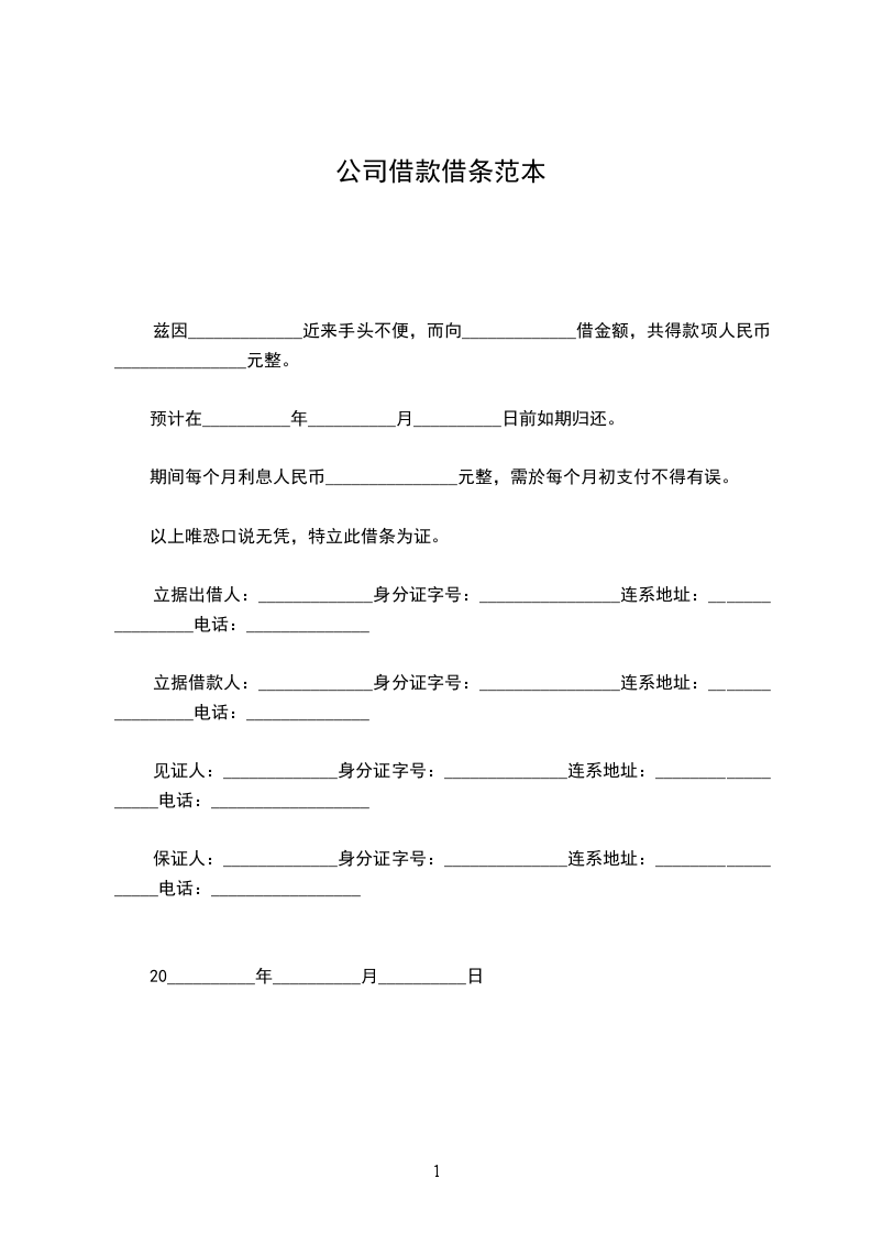 兹因_____________近来手头不便,而向_____________借金额,共得款项人民币_______________元整。
