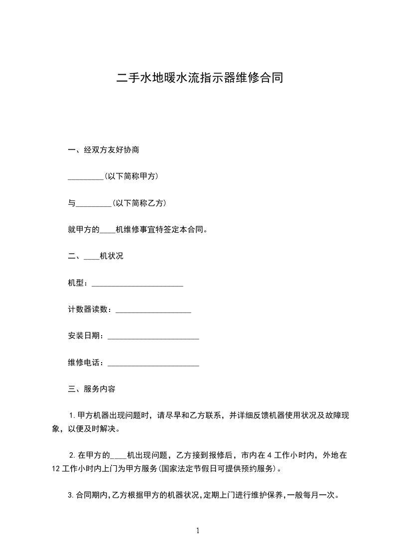 四、根据____机的状况,经双方协商,同意乙方收取甲方____机年维修费为人民币(大写)______元,(小写)¥______元。
