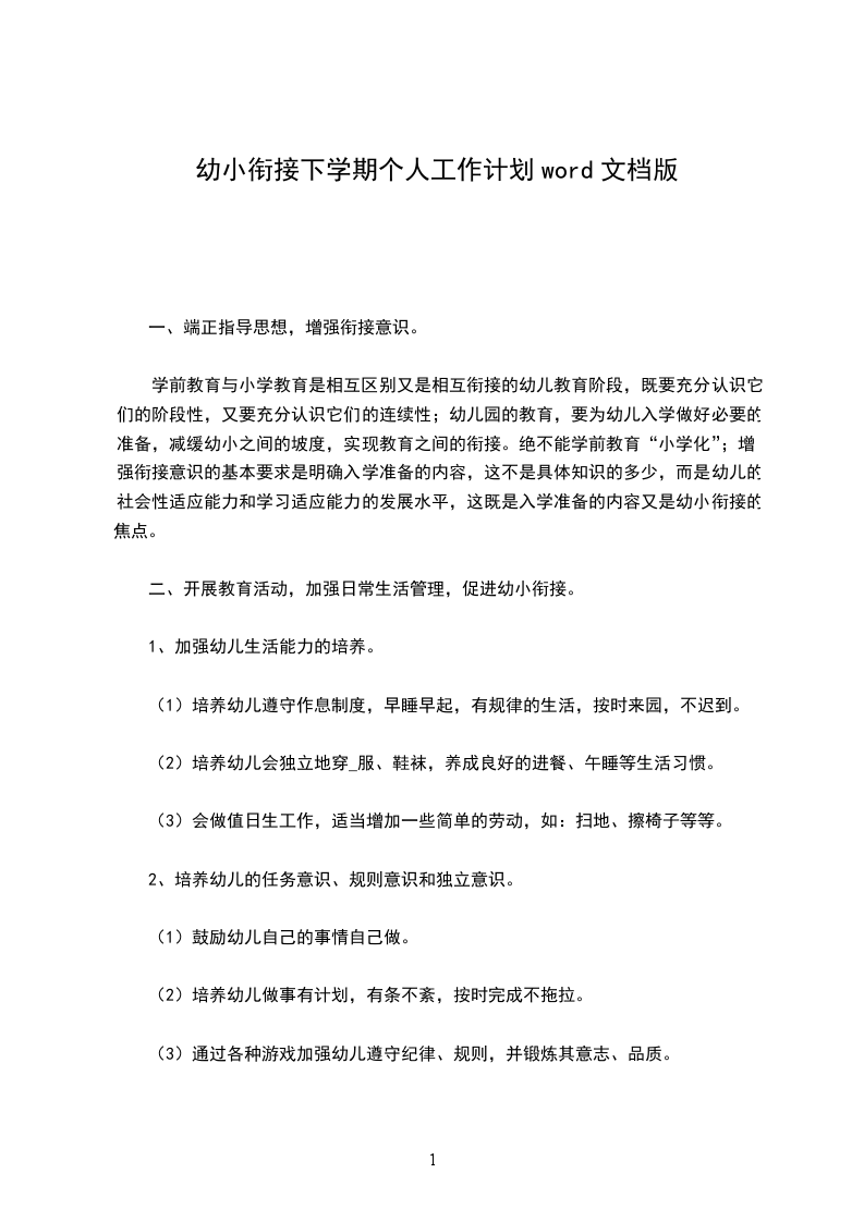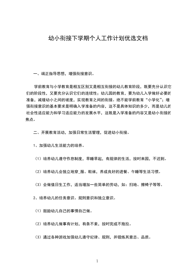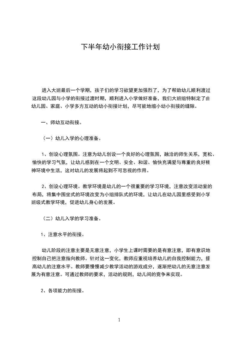 (7)对自己的行为负责。我们争取在半年的时间里做好幼小连接工作,关心我们的孩子以最快的速度适应学校的训练形式。篇