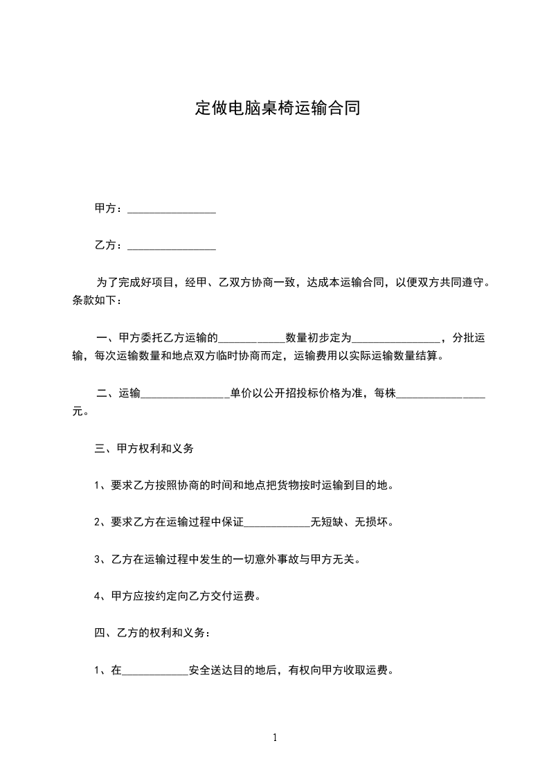 定做电脑桌椅运输合同