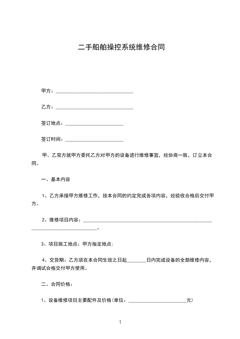 4、交货期:乙方须在本合同生效之日起________日内完成设备的全部维修内容,并调试合格交付甲方使用。