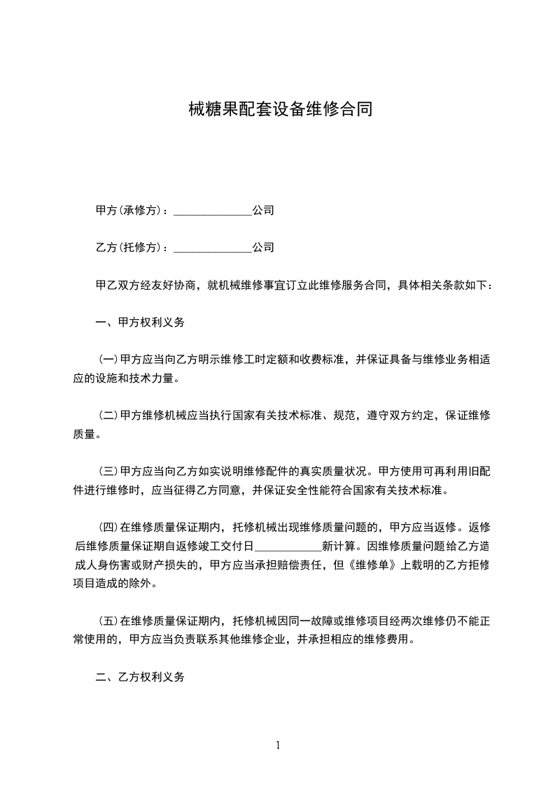 甲乙双方经友好协商,就机械维修事宜订立此维修服务合同,具体相关条款如下:
