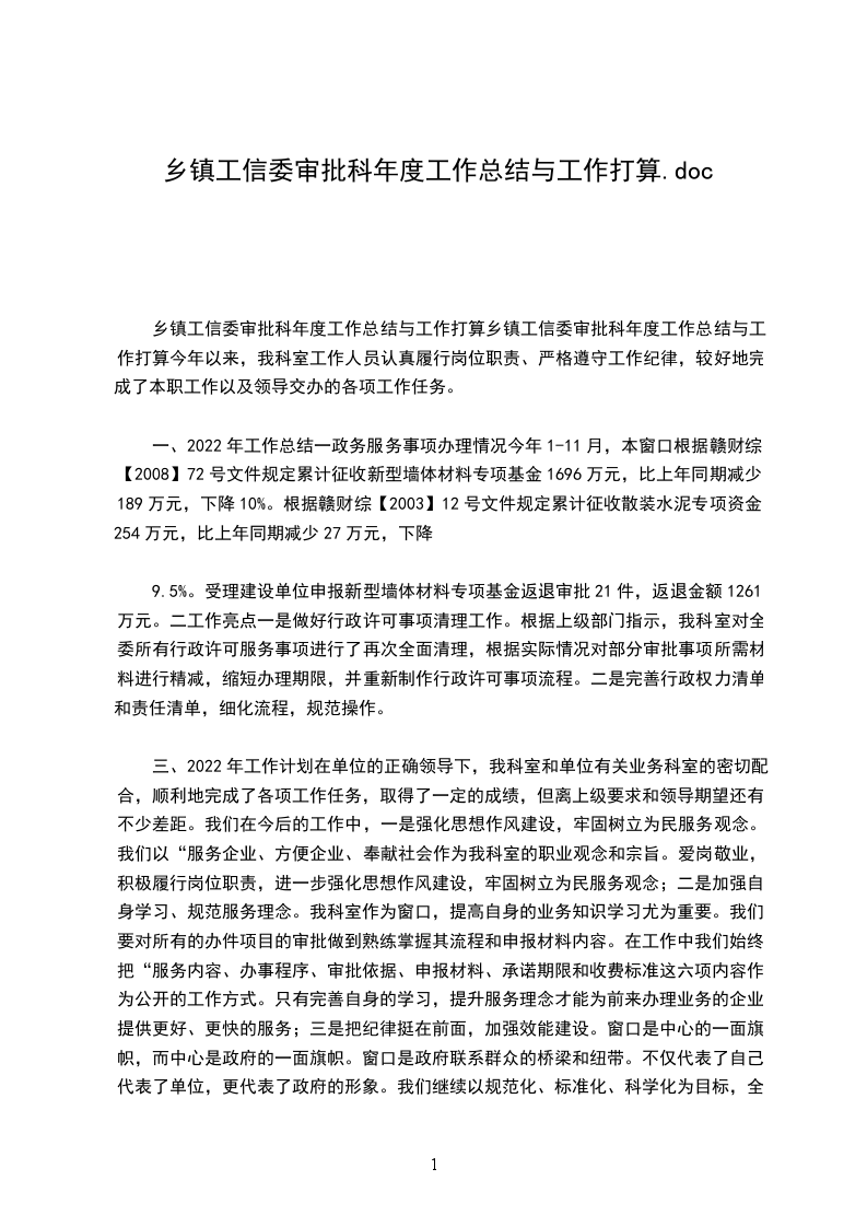 乡镇工信委审批科年度工作总结与工作打算乡镇工信委审批科年度工作总结与工作打算今年以来,我科室工作人员认真履行岗位职责、严格遵守工作纪律,较好地完成了本职工作以及领导交办的各项工作任务。