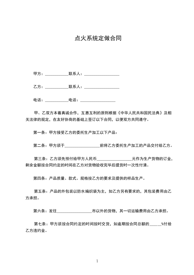 1、本委托加工合同期限为_______个月,自______________至______________,生产交货周期等甲方的计划通知单及双方的补充协议均与本合同具有同等法律效力。