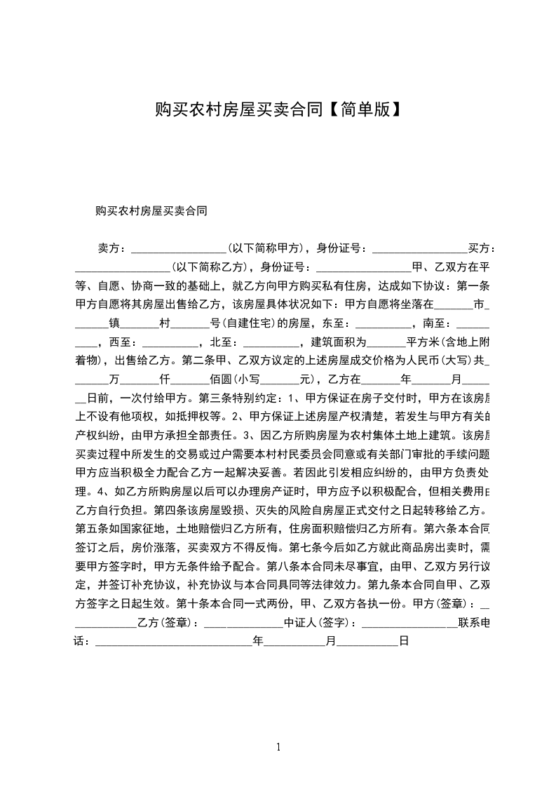 卖人(甲方):_________________身份证号码:_________________