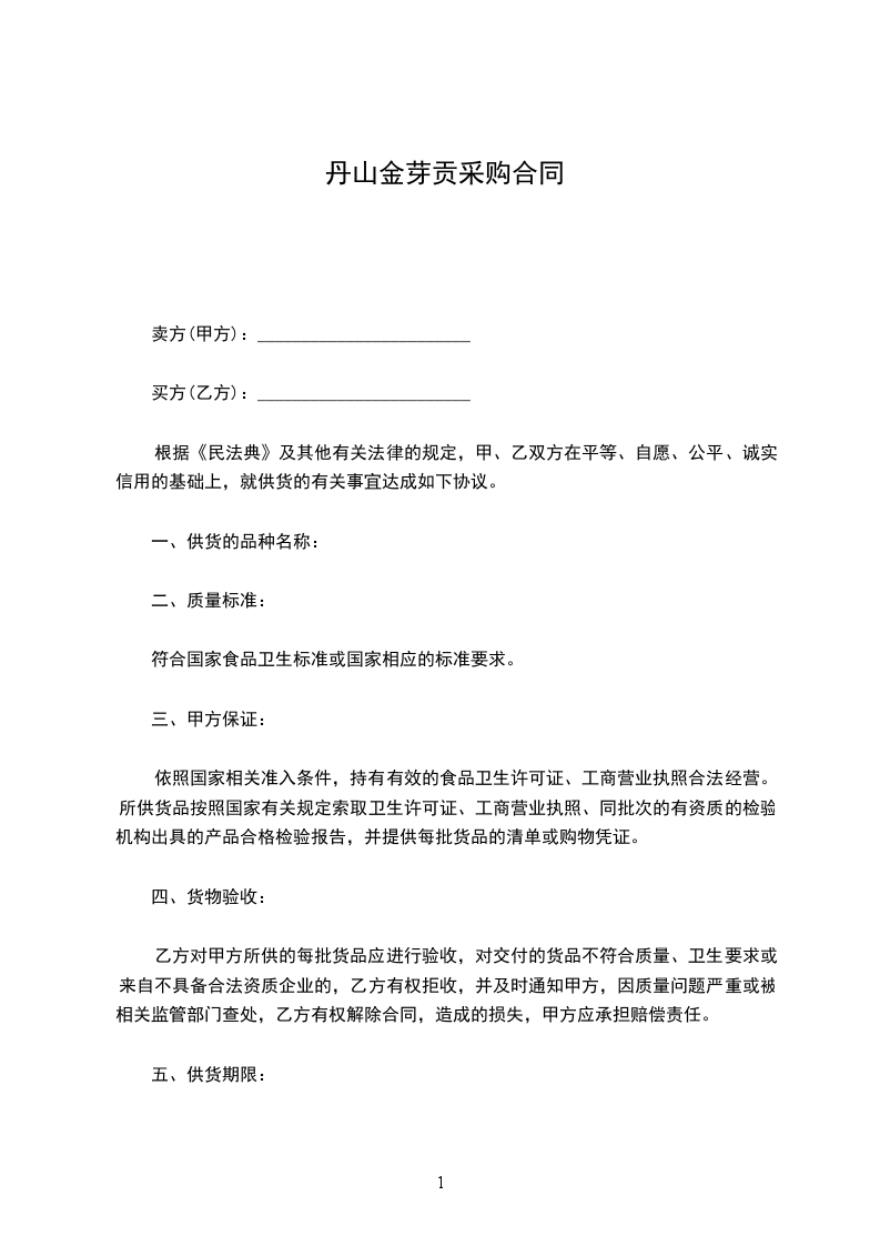 1、拆包时,买卖双方须派代表在现场清点检验,签署并记录在案。若检验包装或者____________成色标准不符合合同约定,则买方可以拒收货物并要求卖方______日内提供符合约定的货物。